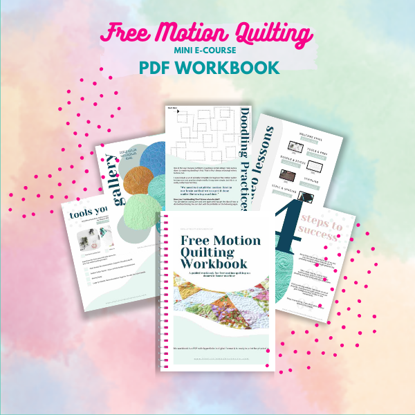 The 20+ pages workbook is the perfect company for the mini e-course to help you successfully start free motion quilting today!